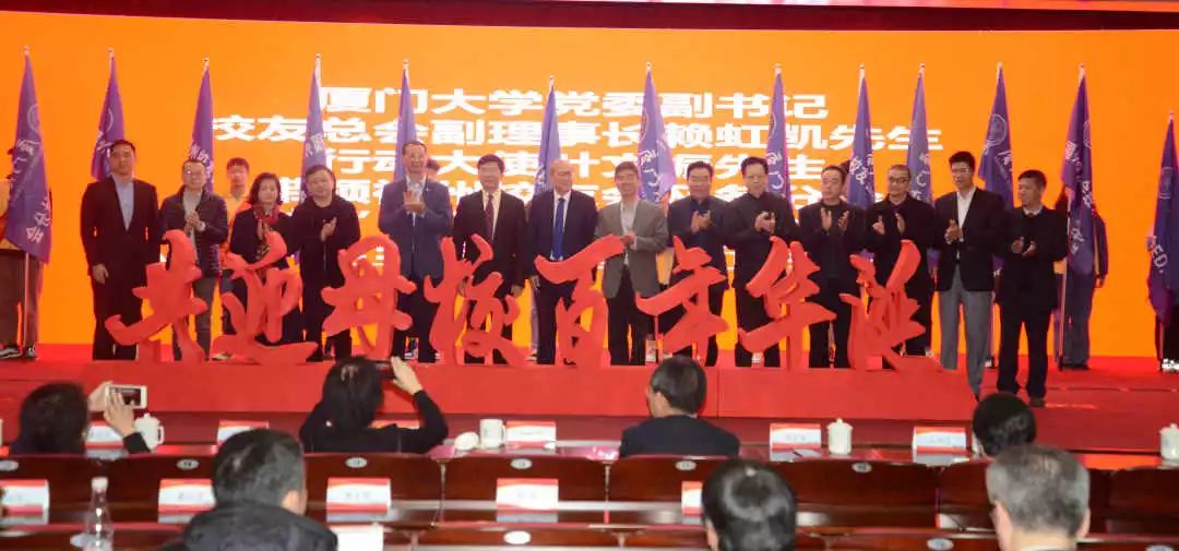 12月22日,厦门大学福州校友会在福建江夏学院学术报告厅召开“共迎母校百年华诞”主题2019年年会暨双迎新联谊会。校党委副书记、校友总会副理事长赖虹凯,著名经济学家邱晓华校友,中国人民银行总行参事、福州中心支行原行长吴国培校友,中共福建省委统战部新阶处调研员黄致秋,校友总会副秘书长王智兰,深圳校友会理事长孙小荔,福建江夏学院校友会会长赖伟平等嘉宾,以及厦门大学“‘奋进新百年、共筑新伟业’行动计划”首批行动大使叶文振,福州校友会会长陈建群、监事长欧如蓉、秘书长余少谦等榕城校友代表,共计350余人出席大会。