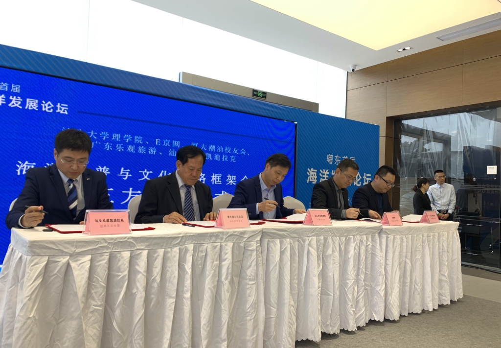 为了更好地借助新媒体方式开展海洋知识科普、海洋文化传播,本次论坛还签约成立了由汕头大学理学院、e京网、厦门大学潮汕校友会、广东乐观旅游、汕头众成凯迪拉克4S店五方共同打造的海洋科普与文化战略合作联盟“粤东海洋爱好者俱乐部”。俱乐部旨在整合高校、社会团体、新媒体的资源和渠道,聚焦海洋科普、海洋文化探索、海洋产业发掘与发展,探讨“海洋科普”和“发展海洋经济”新思路,提升海洋科学机构与科技企业的发展水平,为潮汕地区经济和社会发展做出一份贡献。
