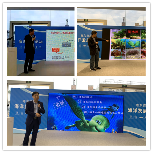 主办方特别邀请三位嘉宾同场论道。汕头大学理学院院长章跃陵教授、汕头大学商学院胡少东教授、汕头大学海洋生物研究所陈伟洲教授分别以《温控性别海龟“辣妹、酷哥”的现状与保护》《潮汕经济与融入大湾区发展》《大型海藻研究及其产业进展》为题,围绕海洋文化与产业前沿领域进行精彩分享。