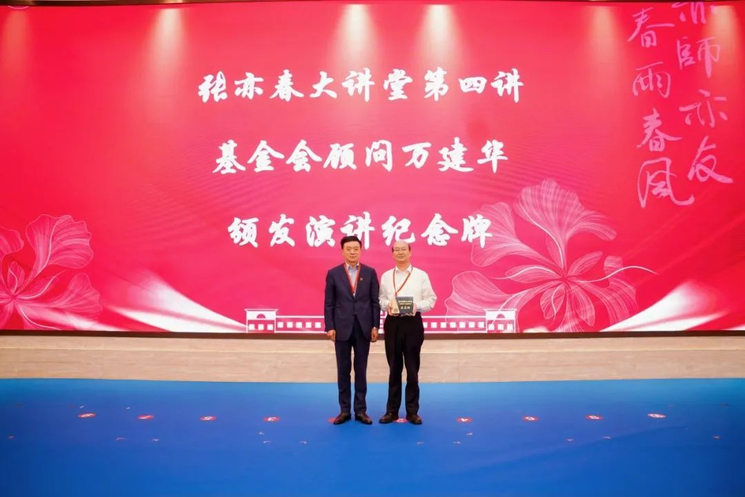 年会随后举行张亦春大讲堂第四讲。张亦春基金会顾问万建华为朱孟楠教授颁发演讲纪念牌。
