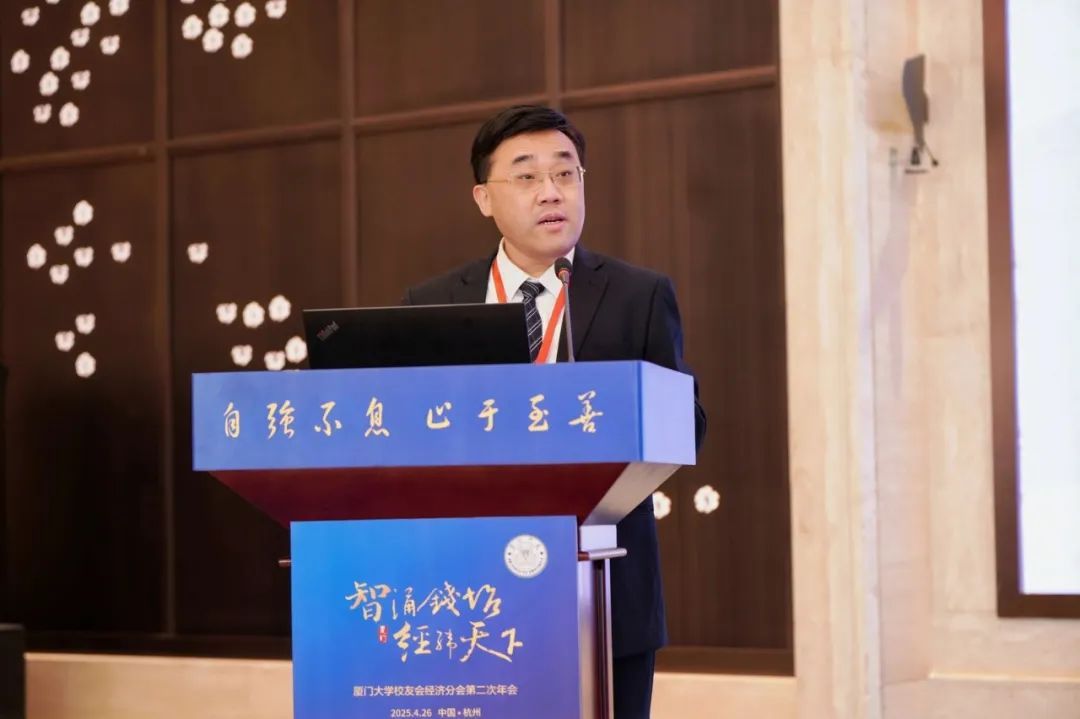 厦门大学校友会经济分会会长、上海校友会荣誉理事长万建华作题为“厦门大学校友会经济分会工作回顾与规划”报告。他谈到,经济分会目前组织架构日益完善,与多地校友院友积极开展深度互动交流,并积极为反哺学院添薪续力;希望经济分会能够秉持初心、再接再厉,共同书写学校学院与校友携手共赢的璀璨新篇章。