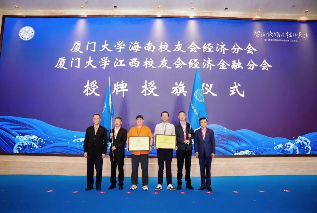 随后,年会举行厦门大学海南校友会经济分会、厦门大学江西校友会经济金融分会授牌授旗仪式。