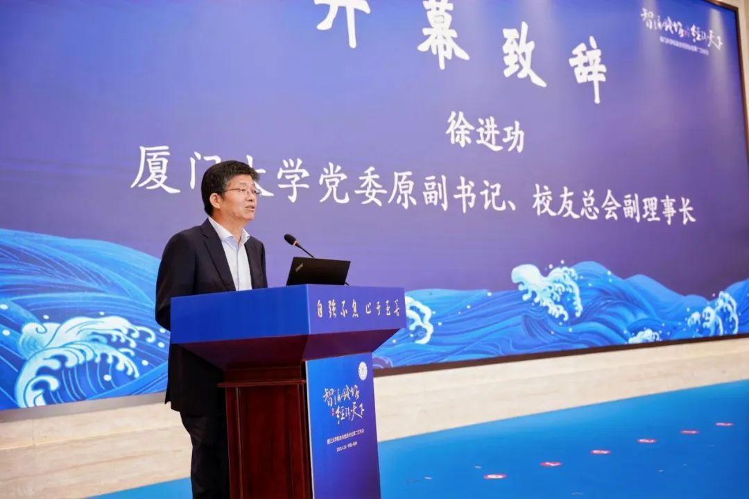 大会在国歌声中拉开序幕。厦门大学党委原副书记、校友总会副理事长徐进功在致辞中热烈祝贺经济分会年会举办,他介绍厦门大学近年来建设与发展情况,并衷心希望各位校友能够与母校心手相连,积极投身于母校和母院“双一流”建设,携手打造一个充满活力与凝聚力的校友与母校发展共同体,成为母校建设中国特色世界一流大学最可靠、最深厚、最持久的力量源泉。