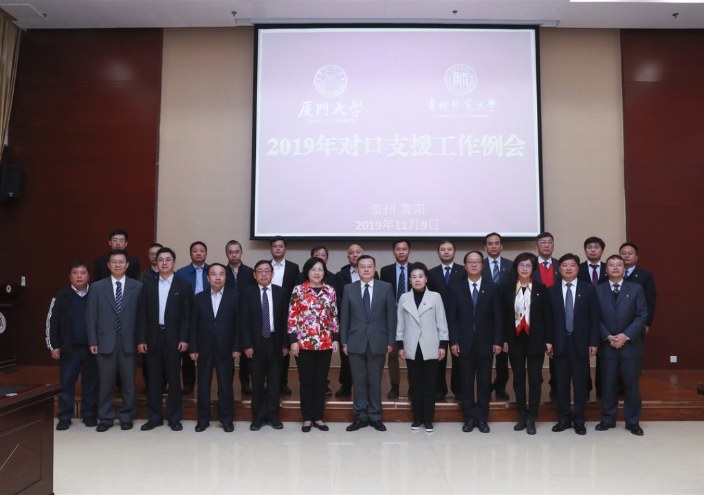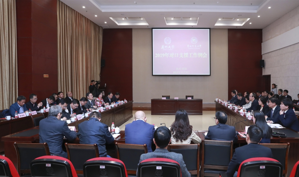 9日上午,厦门大学对口支援贵州师范大学2019年工作例会在贵州师范大学花溪校区行政楼召开。贵州师范大学党委书记韩卉、校长肖远平等校党政领导出席会议。两校相关职能部门、学院负责人参加。会议由贵州师范大学副校长陈云坤主持。