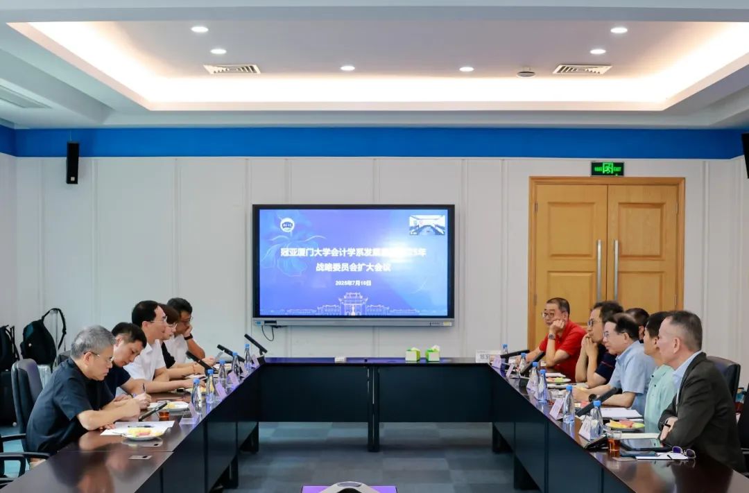 2025年7月10日上午,“冠亚厦门大学会计学系发展基金”(简称“冠亚基金”)战略委员会扩大会议在管理学院嘉庚一100会议室顺利召开。厦门大学副校长、管理学院院长吴超鹏,管理学院党委书记张明智,校友总会秘书长王智兰,教育发展基金会副秘书长徐滨,“冠亚基金”战略委员会委员黄世忠、刘峰,咨询委员会委员邱七星、陈箭深、林勇峰、谢德仁、林志军、魏明海、王华,执行委员会委员朱益民、薛来栋,监事刘维,秘书处张朝晖出席会议。会议由战略委员会召集人刘峰主持,采用线下、线上相结合的方式举行。