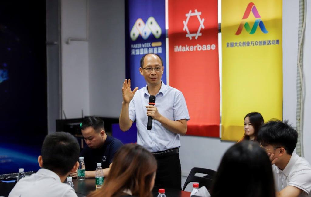 大公坊创业基地CEO丁春发及其助理曾霞为大家详细地介绍了大公坊的创立背景、发展历程和当前概况。他们指出,科技与文化的飞速进步和大量怀揣创业梦想的青年的加入使得深圳创客空间和创新产业蓬勃发展。在完善的硬件供应链、活跃的风险投资、庞大的消费市场前,高素质的研发人才只需带上创新的想法来到宝安区,就可以轻松实现“设计-研发-孵化-生产-运营”的梦想。