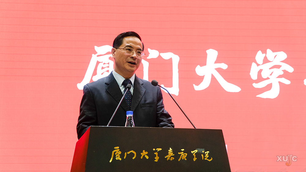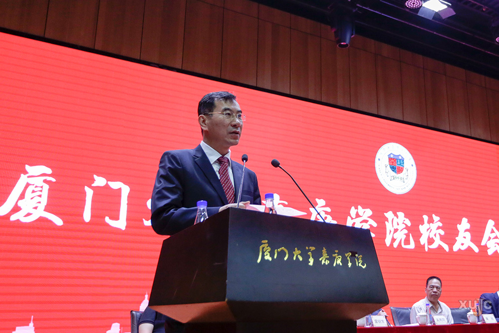邱伟杰代表厦门大学向嘉庚学院表示祝贺,向关心和支持嘉庚学院建设发展的各界人士表示感谢。他指出,16年来,作为母体学校的厦门大学始终把嘉庚学院作为厦门大学教育事业的重要组成部分,全方位支持嘉庚学院的办学,今后厦门大学将一如既往地支持嘉庚学院的建设和发展,以更加积极务实的行动,将嘉庚学院的办学推向新的高度。他表示,嘉庚学院校友会是厦门大学全球范围内第95个校友会,它的成立标志着嘉庚学院校友工作进入一个规范化、组织化、制度化运营的新阶段,也意味着“以学生为中心”的办学理念被赋予了新的内涵,“校友会的成立,为嘉庚学院‘终身教育’‘终身服务’以及‘终身关怀’的工作理念提供了一个新的载体和有力抓手;校友会的成立,也为每位校友打造了一个永恒的精神‘嘉园’。”他希望厦门大学嘉庚学院校友会成立后,能够主动服务、广泛联络,为海内外校友提供一流的服务,尽母校所能帮助校友们茁壮成长。他也希望,嘉庚学院校友们能在厦门大学百年发展中发挥积极作用,为社会、国家做出更多的贡献;能继续关心母校的建设发展,多角度、多方位地为嘉庚学院各项事业献计献策、添砖加瓦。