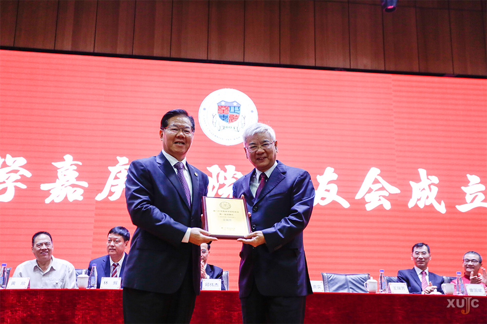 朱崇实为王瑞芳颁发理事长牌。邱伟杰为厦门大学嘉庚学院校友会授会旗。朱崇实、邱伟杰、王瑞芳、林辉共同为厦门大学嘉庚学院校友会揭牌。王瑞芳为副理事长、秘书长、理事颁发证书。