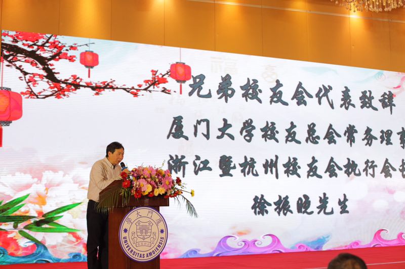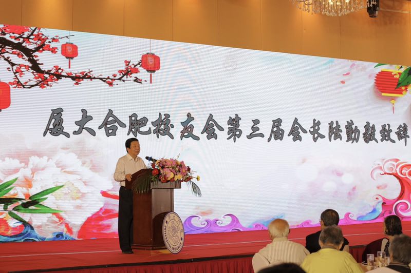 邱伟杰表达了母校及校友总会对在皖厦大校友的诚挚问候。他说,安徽省文化底蕴深厚,一代代安徽人用钻研的精神,爱国的情怀书写了精彩华章。在皖厦大校友继承了“敢为人先,奉献自强”的精神,为安徽经济发展和社会进步做出了巨大贡献,也为母校争得了许多荣誉。厦大合肥校友会是在皖厦大人的坚强后盾与精神家园,长期以来,合肥校友会不断加强校友情谊,提升服务水平,搭建起了校友交流沟通的平台。以陆勤毅会长为代表的校友会骨干付出了巨大努力,新一届的校友会骨干也将秉承优秀传统,取得更优异的成绩。他表示,母校百年校庆即将来临,筹备工作已步入正轨,为把校庆活动办出特色,办得更有意义,需要广大校友和各地校友会的支持与帮助。厦大的百年发展史,就是一部校友感恩母校、回馈母校,支持母校发展的历史。他号召各位校友传承母校“四种精神”,努力进取,奋勇拼搏,在各自的岗位中发光发热,在此基础上积极参与母校百年校庆各项工作中来。