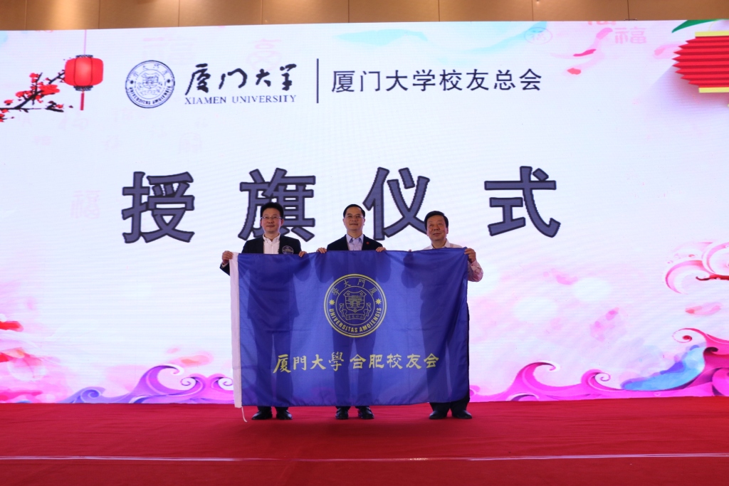 邱伟杰为合肥校友会授“厦门大学合肥校友会”会旗,并向陆勤毅授予“厦大校友服务奖”荣誉纪念杯,以表彰他为合肥校友会所做的奉献,向新一届会长张晓健授予“厦门大学合肥校友会第四届会长”铭牌。