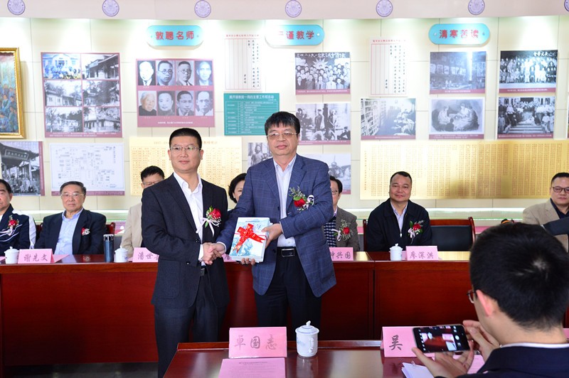 厦门大学管理学院党委书记邱七星向长汀县赠送厦大外籍教授潘维廉著书《我不见外——老潘的中国来信》。2006级法律系校友、龙岩校友会副秘书长刘光海宣读龙岩校友会贺信并赠送“自强不息”书法作品。