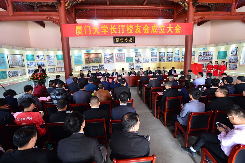 与会领导、校友共同为厦门大学长汀校友会揭牌。大会在厦门大学校歌中落下帷幕。