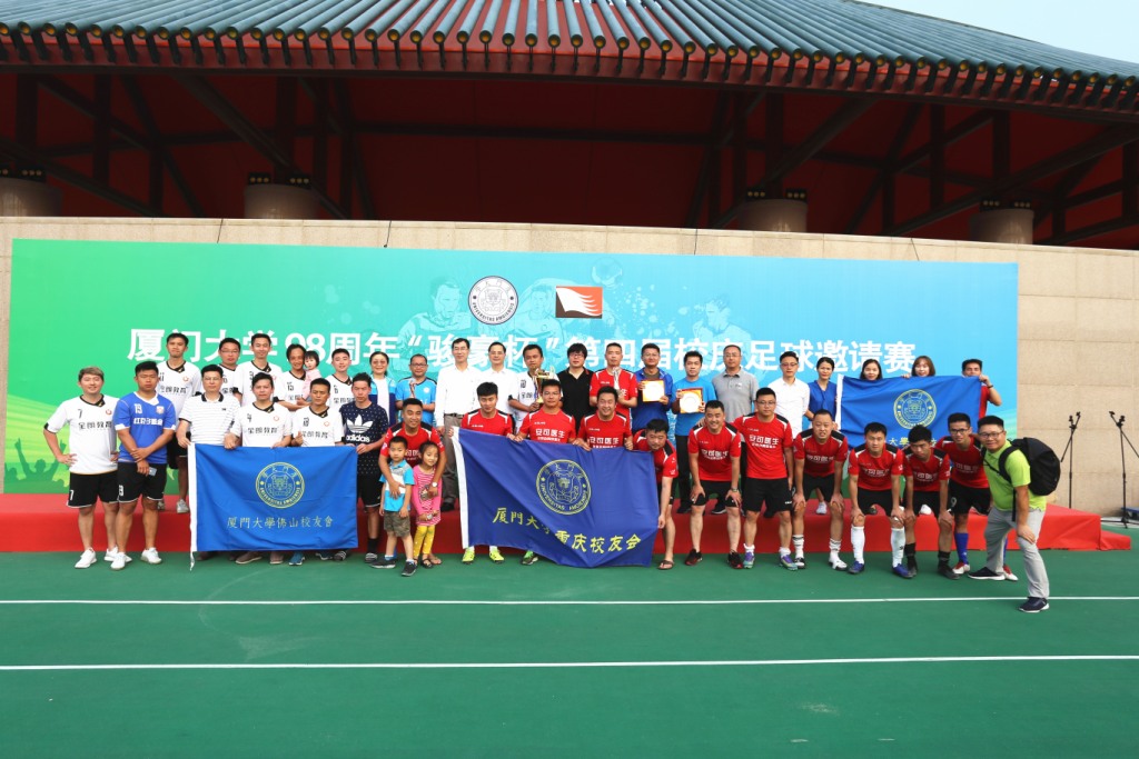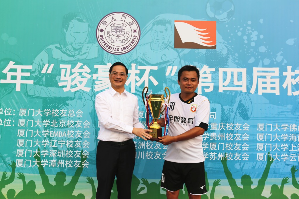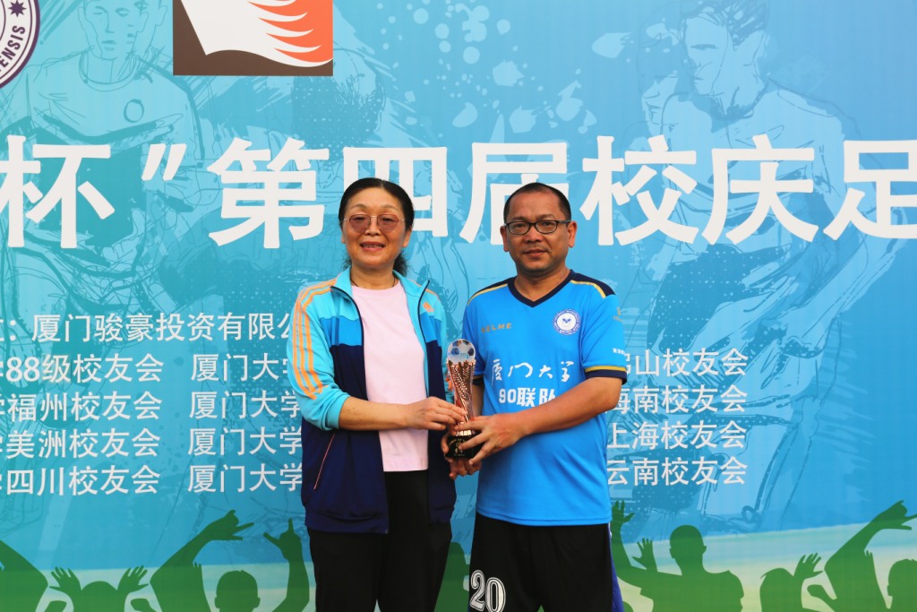 此外,组委会还设立了公平竞赛奖、最佳组织奖、足球先生、最佳射手、最佳守门员等单项奖,丰富了比赛组织形式,提高了校友参与热情。在赛后颁奖典礼上,副校长、校友总会副理事长邱伟杰为佛山校友队颁发了冠军奖杯,校友总会秘书长曾国斌为重庆校友队颁发了亚军奖杯,体育教学部主任陈志伟为美洲校友队颁发了季军奖杯,赛事赞助商代表杨芃为获得公平竞赛奖的福州校友队和获得最佳组织奖的海南校友队颁发纪念奖章。