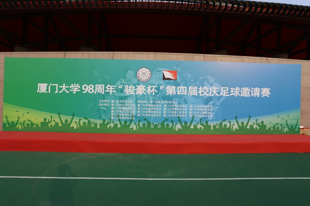 4月6日—7日,厦门大学98周年校庆期间,由校友总会主办的“骏豪杯”第四届校友足球邀请赛在演武场、上弦场举行,本届赛事共有来自全球各地21支校友会球队、400余名校友返校参赛。厦门大学原校长、校友总会理事长朱崇实出席开幕式并为比赛开球。