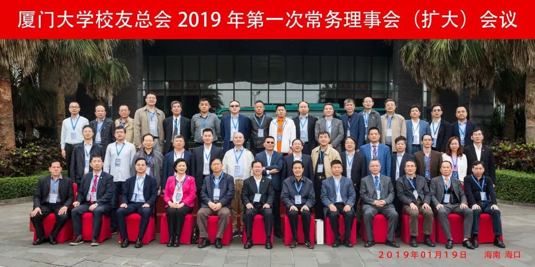 1月19日,厦门大学校友总会2019年第一次常务理事会(扩大)会议在海口顺利召开。本次会议主题为“凝聚校友力量,共话百年校庆”,由海南校友会承办。校友总会理事长朱崇实,荣誉理事王豪杰,副理事长潘世墨、孙世刚、詹心丽,副校长、校友总会副理事长叶世满、邱伟杰,来自北京、上海、福州、厦门、广东、深圳、浙江、香港等地校友会以及校内相关职能部门的常务理事和校友代表参会,交流校友工作经验,共商母校百年校庆方案,凝聚校友力量助力母校建设发展。会议由校友总会秘书长曾国斌主持。