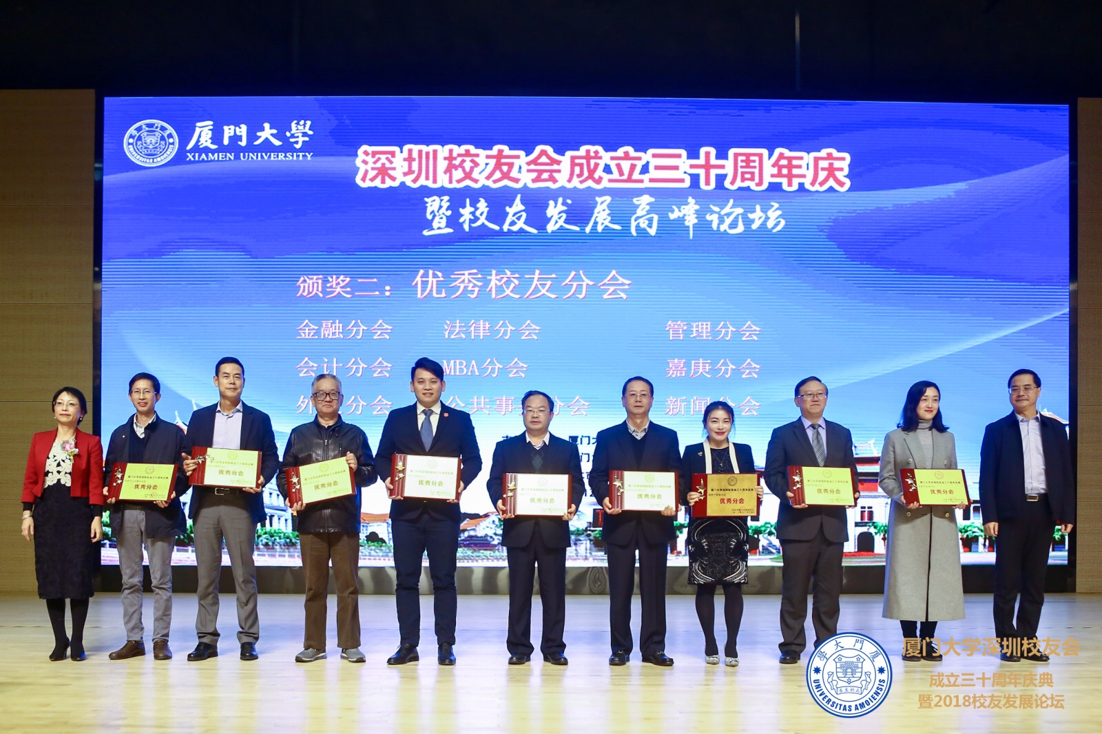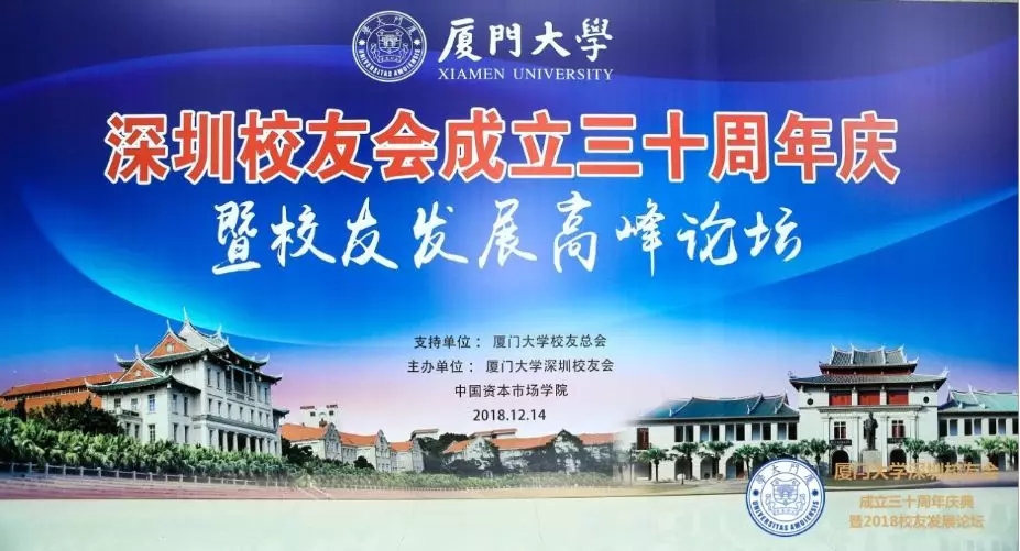 12月14日,厦门大学深圳校友会三十周年庆暨校友发展高峰论坛在深圳举行。厦门大学校友总会理事长朱崇实,副校长、校友总会副理事长邱伟杰,校友总会副理事长潘世墨,校友总会荣誉理事黄良快,校友总会秘书长曾国斌,广东校友会、旅港校友会、北京校友会、厦门校友会、东莞校友会、潮汕校友会、1988级校友联谊会、全球厦门大学金融校友联合会、EMBA深圳校友会等兄弟校友会代表以及在深校友,共计700余人出席了活动。