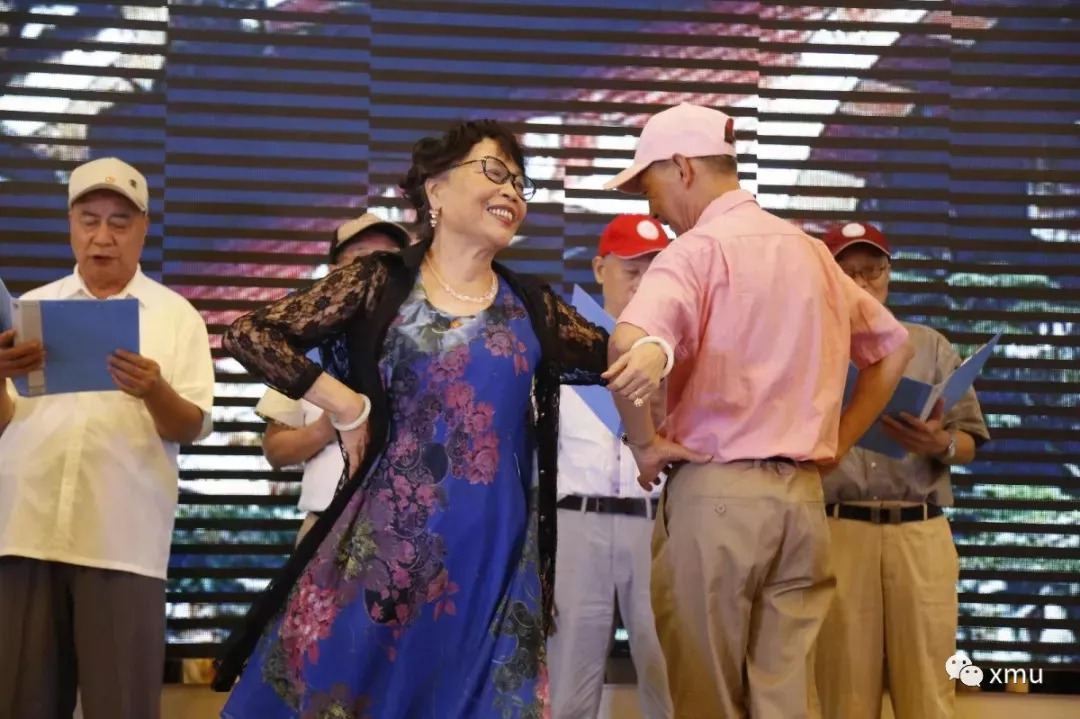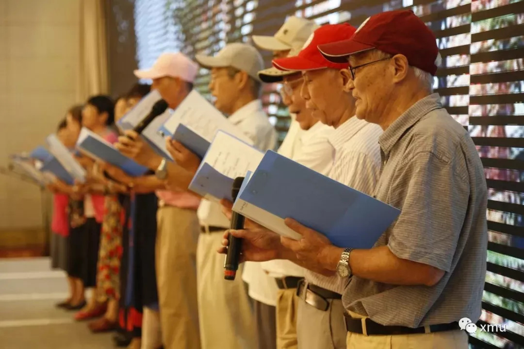 平均年龄75岁的老年校友合唱团依旧激情澎湃地带来小组诗朗诵《你们和我们》、合唱《青年友谊圆舞曲》。