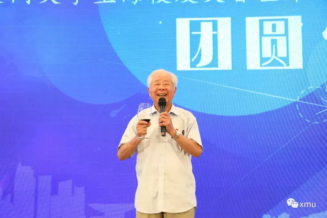 午宴开始前,由参加本次会议最年长的校友代表致祝酒辞,今年91岁的49级贸易系陈志雄学长邀请大家举杯同庆。