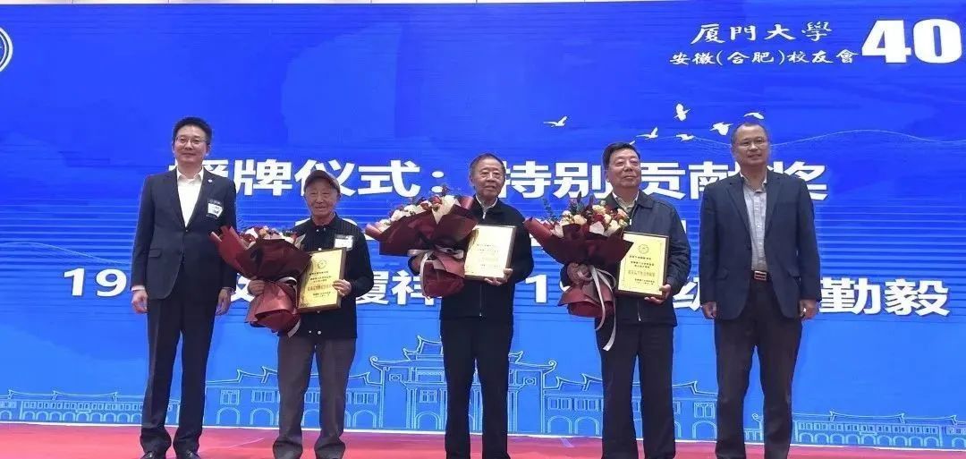 安徽校友会之能够获得大家高度认可,是一代代厦大人,特别是老一代校友们无私奉献的结果。为感谢他们的贡献,林东伟、张晓健共同为陶树刚、陈履祥、陆勤毅三位校友颁发特别贡献奖牌。