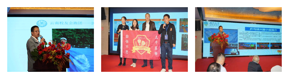 厦门大学云南校友会马拉松社团负责人陈鹏州、羽毛球社团负责人庄志刚、乒乓球社团代表陈祖立等校友依次上台介绍各自社团发展情况,并欢迎新老校友加入兴趣团队。