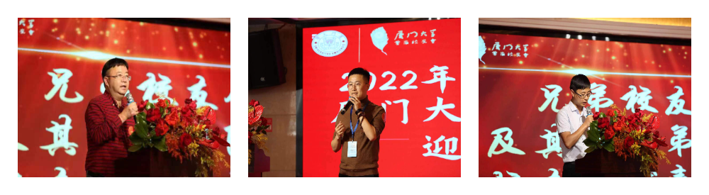 2017级生物学系李佳家、2017级预防医学系王炜捷、2019级金融系赵文泽代表新加入云南校友会的厦大校友发言。大家表示,将以校主陈嘉庚先生为人生楷模,发扬母校校训精神,传播母校优良校风,扎根云南、落户云南,为祖国西南地区建设与发展贡献力量。