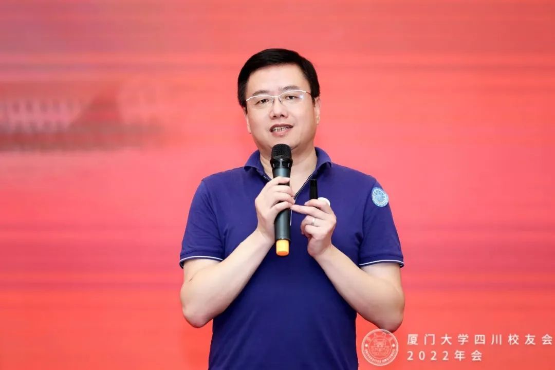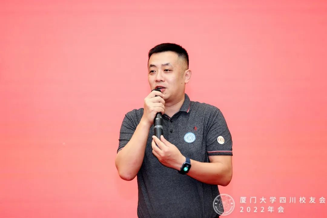 厦门大学贵州校友会会长赵浣淳代表兄弟校友会致辞,他表示,校友工作非常辛苦,特别需要付出和情怀,越刚师兄连续做了12年会长,还要继续连任,他非常感动和敬佩。他将把四川校友会的经验带回去,推动贵州校友会的工作发展,也非常欢迎四川的校友们经常到贵州去走走看看。