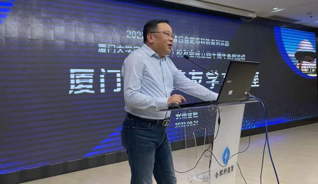 厦门大学安徽(合肥)校友会四十周年成立之际,正值“喜迎二十大,科普向未来”全国科普日活动,厦门大学安徽(合肥)校友会联手合肥市科协于2022年9月24日在合肥市科技馆举办了“厦门大学校友学术讲座”活动。活动邀请了厦门大学杰出校友谢毅院士和陆勤毅教授,分别做《小纳米 大作为》与《合肥历史脉络和文化特点》讲座。厦门大学安徽(合肥)校友会会长张晓健主持此次讲座,近百位厦大校友、中国科学技术大学等兄弟校友会代表以及合肥市八中的同学们参加了此次活动。