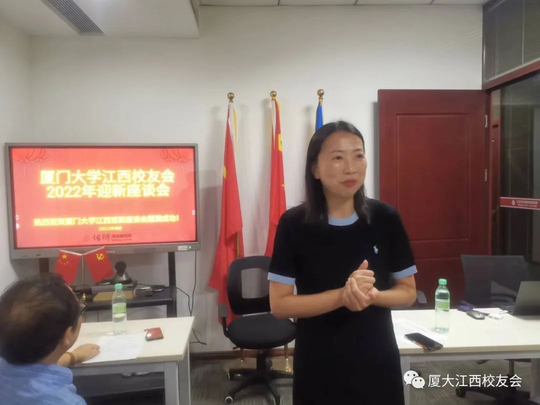 随后,盛芳梅对新校友的加入表示欢迎,并向新老校友具体介绍了江西校友会公益资助、高校联谊、球类竞技等相关校友活动,让新校友对厦门大学江西校友会有更深入的了解,并表示校友会将一如既往陪伴大家,积极组织策划各类活动,也期盼新老校友积极参与、资源共享、建言献策,齐心助推校友会建设。
