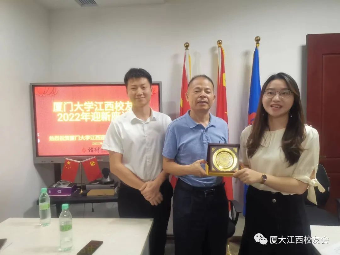 百年厦大,薪火相传。本次活动还有一个亮点,新毕业生校友献上百年校庆纪念品——厦门大学红木标志盘。作为2022年毕业的新百年厦大校友,集体借此表达对校友会的真挚祝福,寓意校友会的未来灿烂辉煌、红红火火,并期盼在江西工作后不忘初心,在校友会的掌舵下再扬帆启程。余森清接过礼物并表示感谢,校友会将以此为起点,把校友会工作做得更好,也祝愿新校友在赣发展顺利,发出新百年厦大人的光和热。