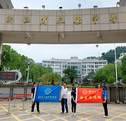 6月25-26日,厦门大学国际关系学院/南洋研究院办公室主任洪小荣、党务秘书龙羽西作为厦门大学浙江招生宣讲组成员专程赴温开展2022年招生宣讲活动,招生宣讲组一行先后走进永嘉中学、瓯海中学和温州中学,面对面为考生提供政策解读、学科介绍、问题咨询等,厦门大学温州校友会会长虞智勇、秘书长陈瑞祥以及王荣伟、林煜淇、丁但凌、程新阳、周君、卡洛斯、张盈盈、潘诗瑶,金子等校友积极配合母校开展好本次招生宣讲活动。