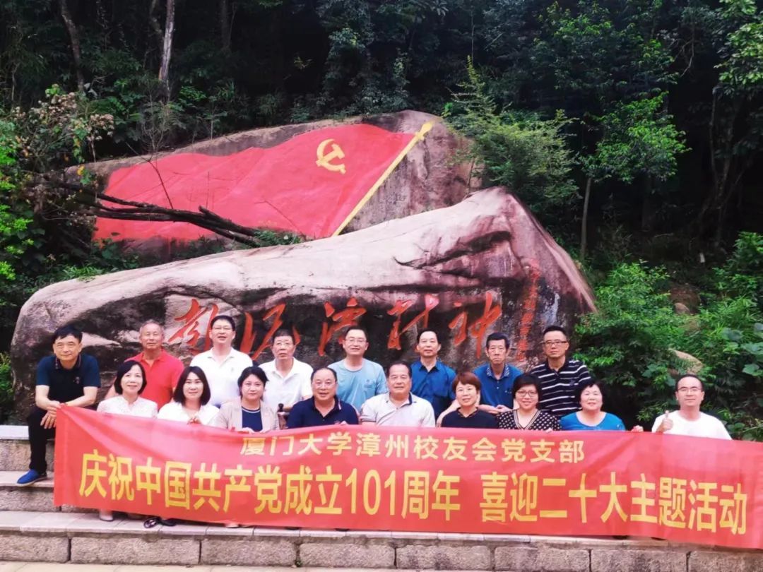 7月1日下午,厦门大学漳州校友会党支部组织全体党员,赴长泰区小黄山开展庆祝建党101周年主题活动。党支部书记、校友会监事长吴炳龙、校友会执行会长兼秘书长陈志伟、常务副会长郭少泽、副会长何小青、蔡津津、常务副秘书长谢荣辉,以及部分副秘书长、常务理事、秘书处工作人员等近二十人参加了活动。