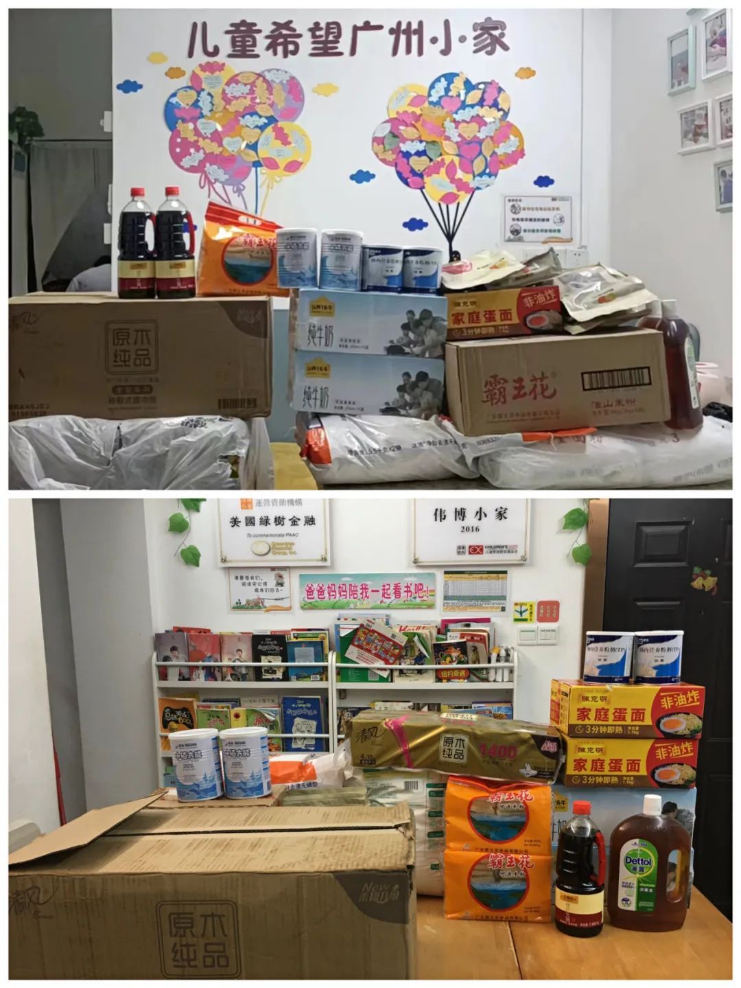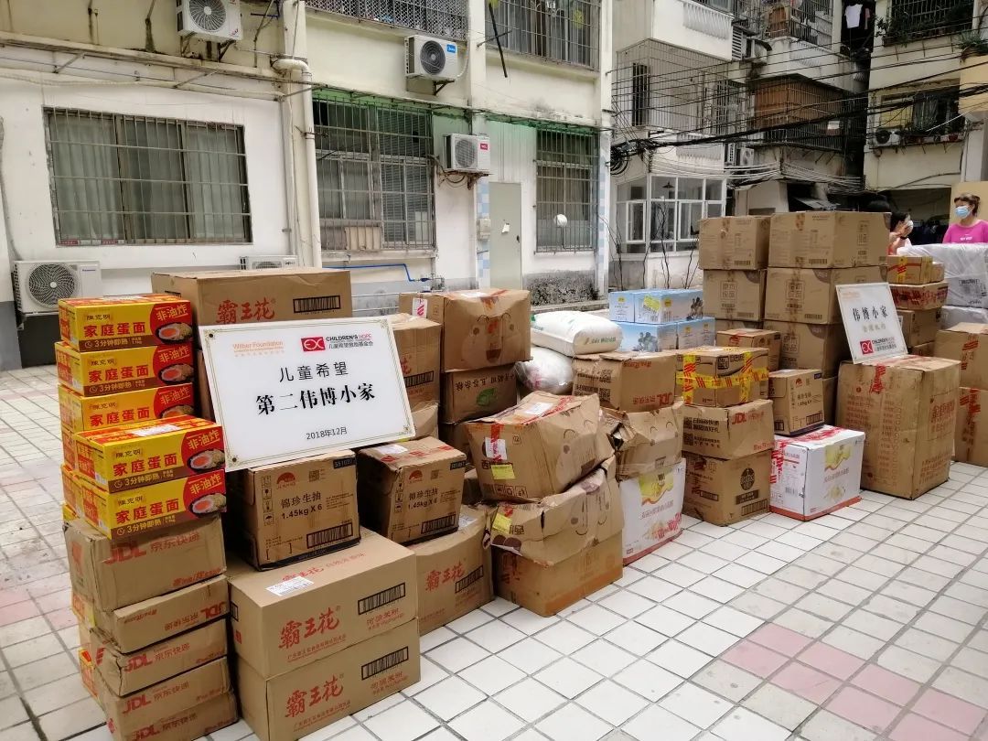 今年四月的疫情让小家再次经受了考验,防疫管理升级,小家的病童们除了去医院外,尽量减少其他外出,停止所有探访。由于疫情来势汹汹,小家的管理员担心物资储备不足,于是向资助单位厦门大学EMBA广州校友会发出了募集需求。校友会秘书处收到消息后,立马向广大校友和社会各界发出捐钱捐物的倡议,其中,广州民盟、广东巨三集团卢任贵总经理和广东沣泽建筑工程管理有限公司黎一文总经理、校友会会长余观帝、荣誉会长岑兆雄、副会长崔德锦、副监事长李绍亮、秘书长高洪昭、理事陈进权、副秘书长任艳辉、2015博雅班叶文龙等所在爱心单位积极响应,不到三天时间筹集了伍万元左右的现金,并根据小家需求采购了一批米油、耐放的干货、奶粉、营养粉,洗涤用品和消毒液等,这批物资将助力六个伟博小家共计27个病童家庭约80多人次渡过难关。