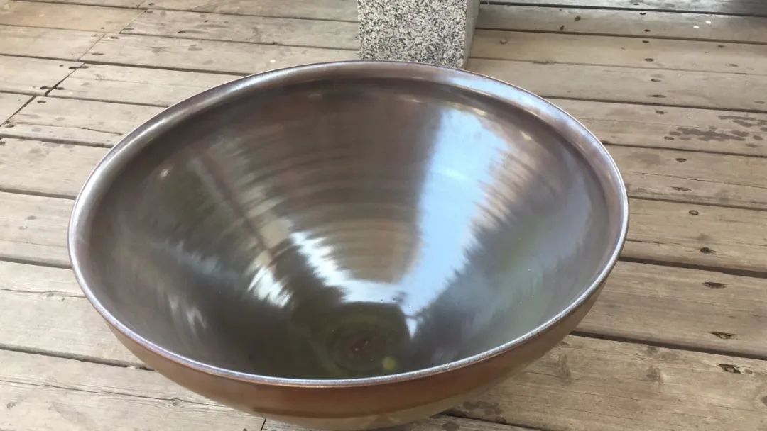 这个建盏的尺寸令人瞩目,坯胎由詹桂溪手工拉坯制作,尺寸大小高25cm,口径50cm,并配以金丝楠木底座。该建盏起名为“大展宏图”。总所周知,大器型成功概率极低,在经过3次烧制后,从13个作品中选出了目前这个成功的作品。该建盏代表当今建窑建盏烧制技艺的最高水平。该束口大盏以传世经典束口器型为设计理念,施以传统建盏矿物釉,采用传统龙窑柴烧而成。坯体如铁,扣之有音,釉色温润。大盏寓意为“大展宏图”之意,整个大器寓意厦大百年华诞,福寿绵长、万代永兴之美好祝愿,并蕴含厦大百年树人、桃李满天下之意。