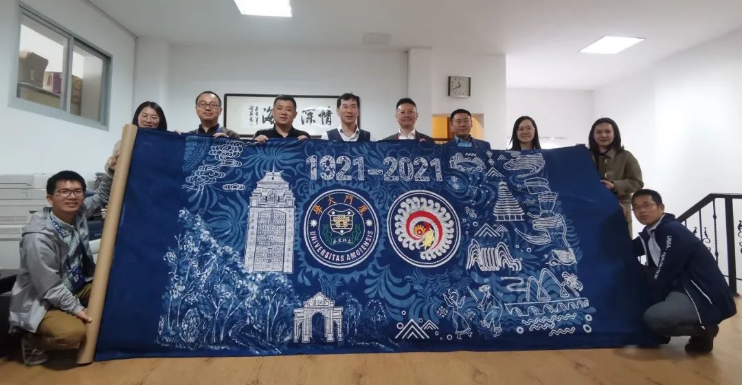 为献礼母校百年校庆,厦门大学贵州校友会携手贵州省黔西南州望谟县锦绣坊创作了蜡染刺绣作品“黔程似锦”。4月5日,贵州校友会会长赵浣淳、副会长杨再祥、秘书长何波代表贵州校友将这份饱含深情的礼物送至厦门大学校友总会,祝福母校百岁华诞,也寄托了贵州厦大的莘莘学子对母校的怀念及感恩。