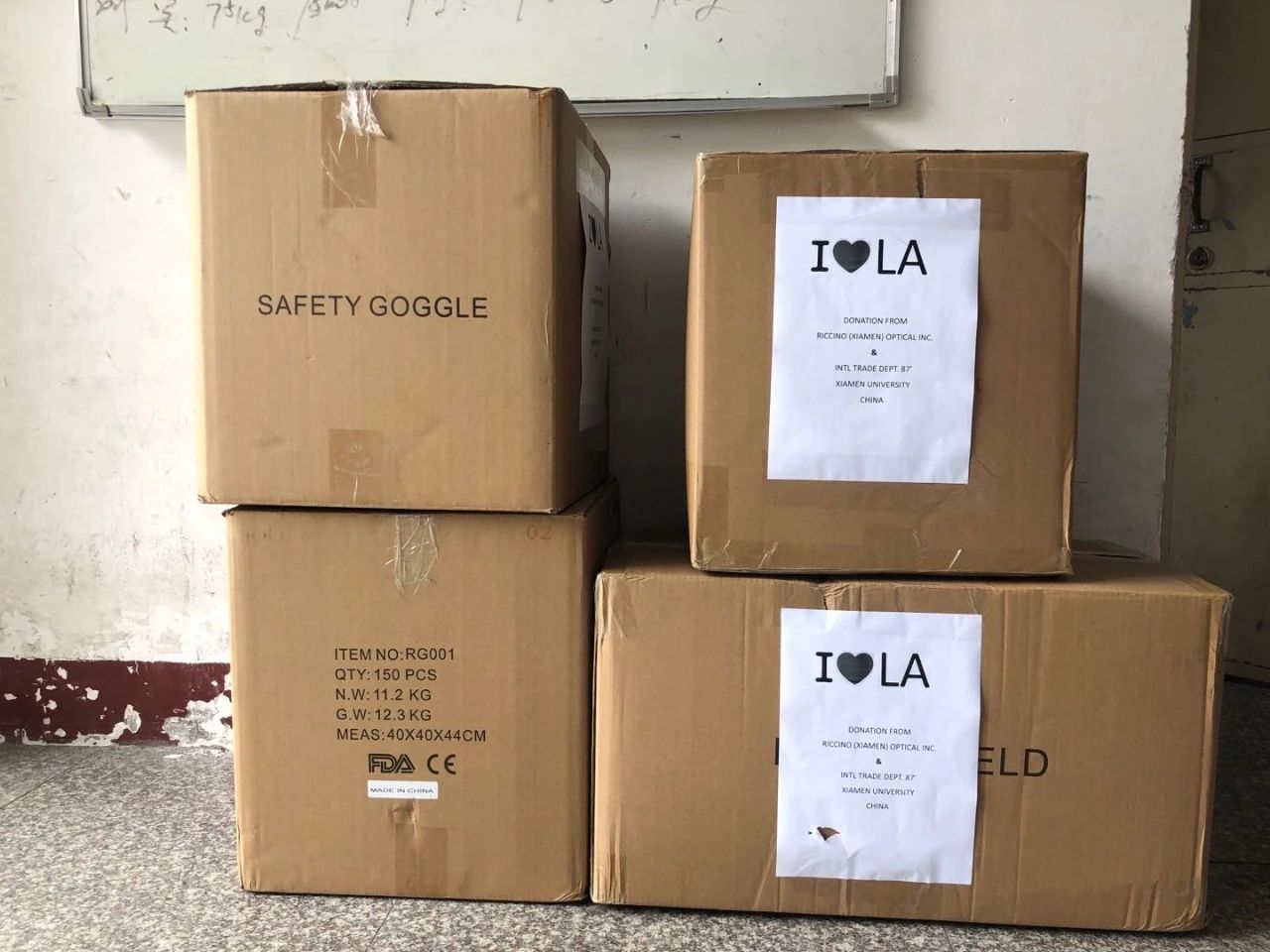 校友周贤建(87级国贸,福建厦门)捐赠护目镜(450个)、防护面罩(400个)抗疫物资给厦大南加州校友会