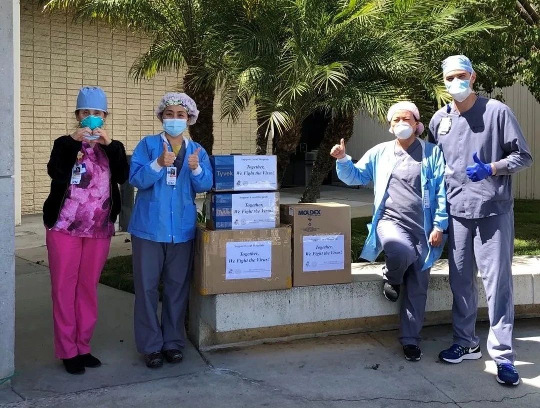 后来,由于捐赠物资和款项进一步增加,经义工小组讨论,同意将捐赠范围拓展到了多家南加地区的医院,后来进一步拓展到养老院(nursing home)与几家外州医院/养老院等机构,尽力做好物尽其用,高效配送。适逢南加开始实行lock down居家令,在疫情笼罩下物资配送更为困难,但多位校友志愿报名加入了物资递送的队伍承担递送任务。并把自己家人也拉入志愿者队伍一起完成递送任务。