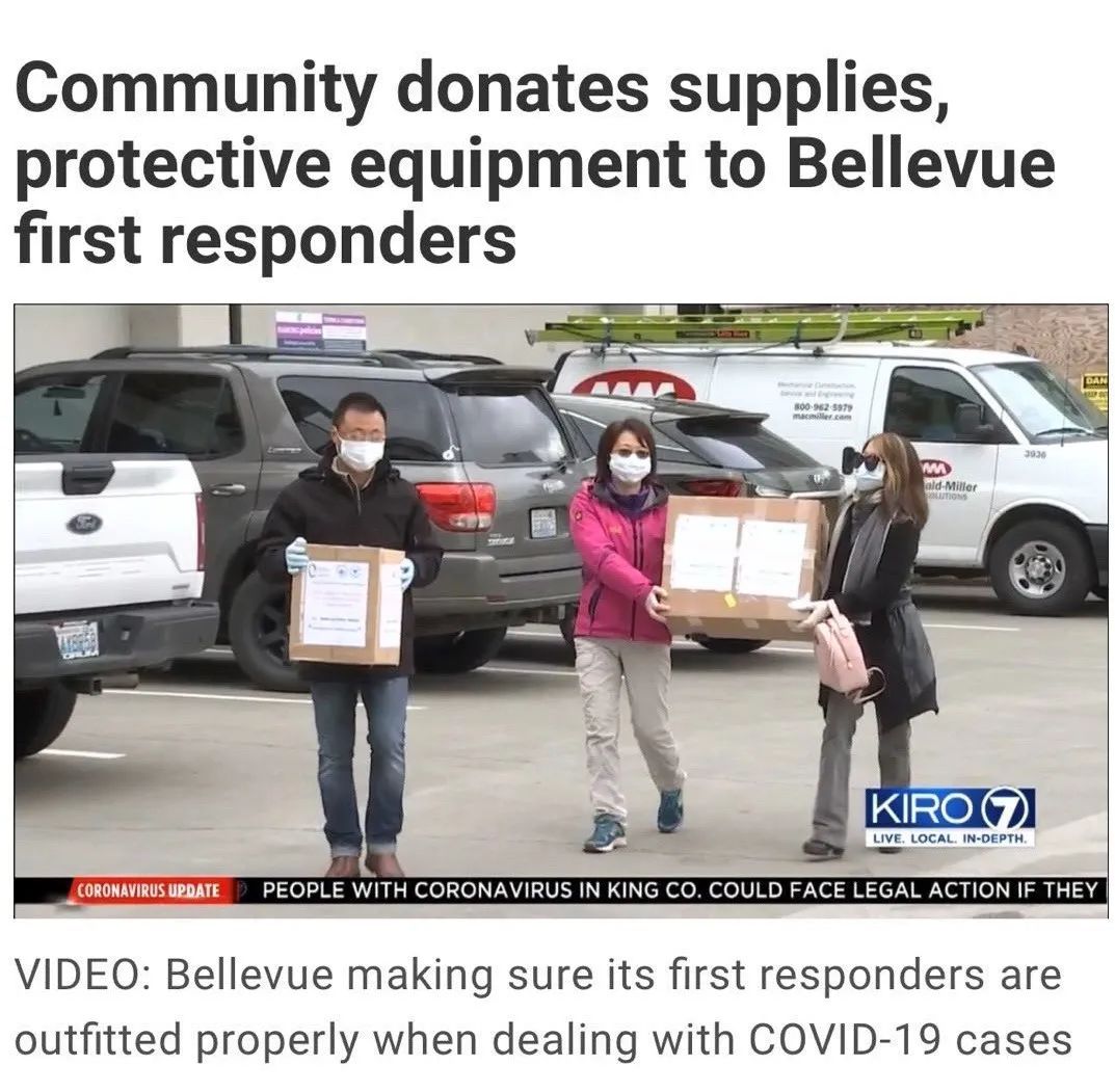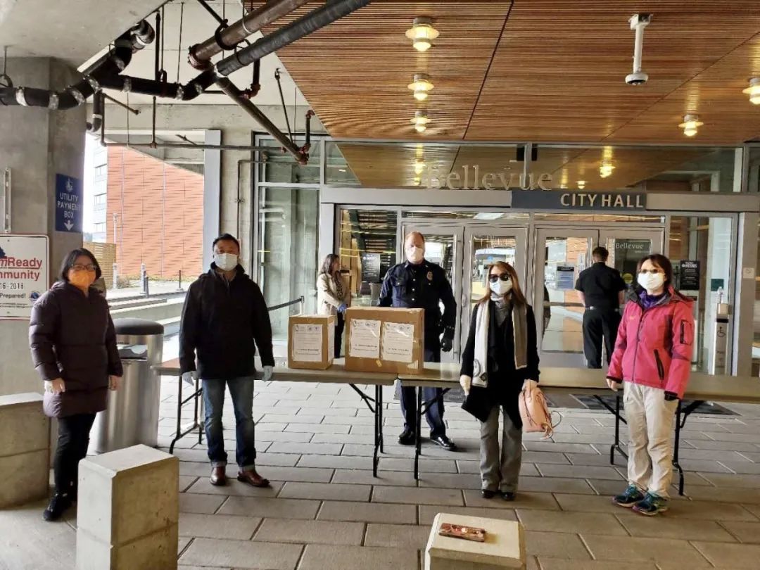 西雅图校友会和华州中国总商会向Bellevue 市政厅警察局及消防局捐赠防疫物资