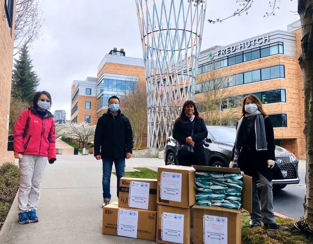 西雅图校友会和华州中国总商会向 Fred Hutch 癌症研究中心捐赠防疫物资