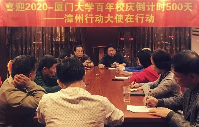 厦门大学百年校庆倒计时500天系列活动结束之后,喜获“行动大使”荣誉称号的漳州校友会会长王光文一回到漳州立即与漳州校友会领导班子成员研究贯彻落实意见。12月16日,漳州校友会召开会长年会,喜迎2020年,认真研究“行动大使”计划。会议由漳州校友会常务副会长吴炳龙主持。
