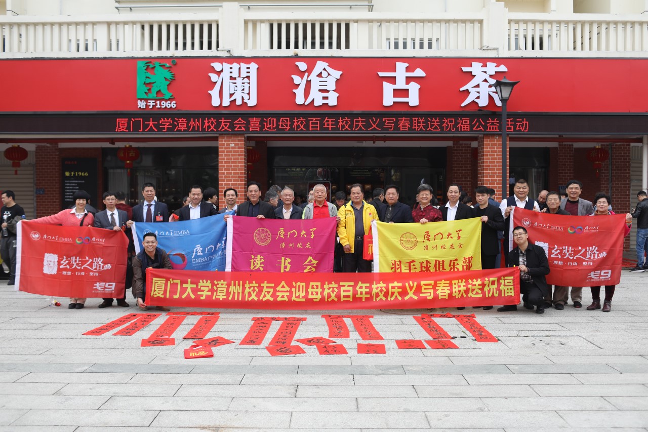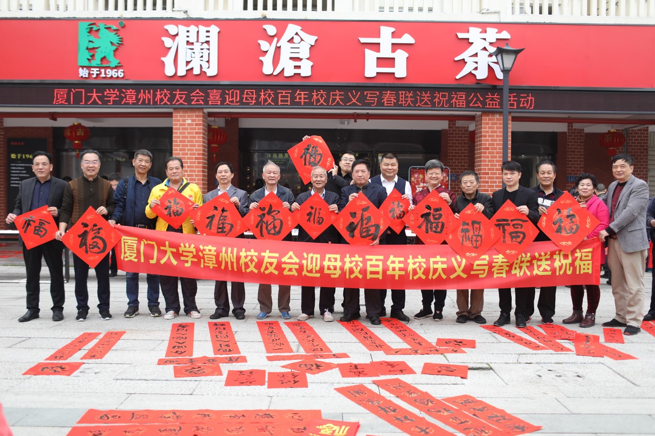 1月5日上午,漳州校友会在漳州古城西广场与澜沧古茶漳州品鉴中心联合举行义写春联送祝福公益活动。参加本次义写春联的校友书法家有曾君灼、吴两同、谢荣伟、黄忠源、陈木坤、欧晓勇、朱智龙等,以及张欣教授、杨志疆教授、林隽生副教授等友好校友会书法家。