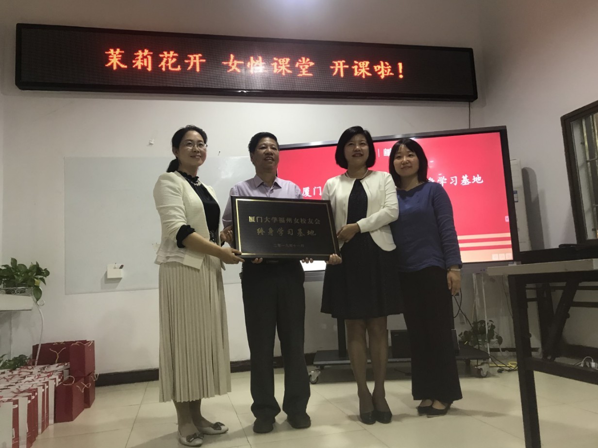活动的开场由厦门大学福州女校友会会长林冰致辞,林冰会长首先感谢了本次活动的主办方新华技术学校为本次活动提供场地和讲师,并且刘炜英校长作为新华终身教育的发起人之一,已开办了茉莉花开女性终身教育课堂,对同样名为茉莉花开的厦门大学福州女校友会的活动邀请由来已久,此次因书法体验活动正式结缘,实现厦门大学福州女校友会终身学习基地的落地,也是完成了两方的夙愿,对双方而言都具有里程碑意义。接下来,林冰会长宣布分会的一些事务。第一,分会秘书长进行换届,任命林晶为女校友会的新秘书长;第二,预告副会长的变更及会费收取事宜。随后,授牌仪式开始,由余秘书长、林冰会长共同将手中的牌匾授予新华技术学校的刘炜英校长,并一起合影留恋。授牌仪式后余秘书长致辞,对女校友分会今年开展的活动给与充分的肯定和鼓励。余秘书长也通告了百年校庆的一些准备工作,并预告下月福州校友会2019年年会暨双迎新联欢会将邀请重磅嘉宾——同是厦大校友的国家统计局局长邱晓华来榕进行经济相关的分享。