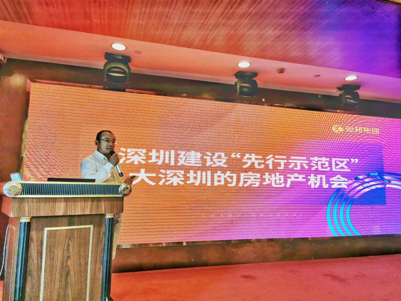厦门大学深圳校友会副理事长、深圳前海灿邦投资控股集团董事长陈江洪以《深圳建设“先行示范区”大深圳的房地产机会》为题,分享了深圳关于建设成为“先行示范区”的政治含义及经济含义。