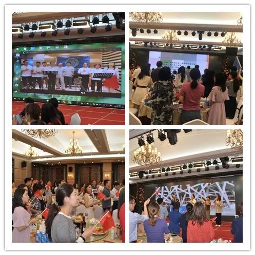 “鹭江深且长,致吾知于无央。吁嗟乎,南方之强!”全体校友起立共同唱响校歌。随后,全场合唱《今天是你的生日》,合唱由老校友分会秘书长1973级化学王维民、1980级中文系校友冯连胜、2012级音乐系校友万程和2006级音乐系校友刘亚辉领唱。自1921年建校以来,厦门大学就有着光荣的爱国历史和传统,以陈嘉庚、罗扬才、萨本栋、王亚南、陈景润等为代表的“四种精神”是厦大人爱国奋斗的生动体现。校友们边唱边挥舞着手中的国旗,通过美妙的歌声传递厦大人对祖国的热爱。