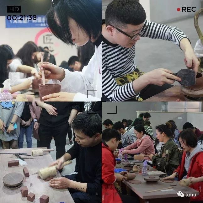 出得善卷洞,我们来到由85级考古系校友徐友麟学长创建的宜兴市三壶文化发展有限公司的宜兴紫砂百工坊研学基地,学长从紫砂泥开始讲起,帮助我们更好地感受紫砂文化,之后我们在一片敲打声中自己动手,亲手制作了一个紫砂杯。看着容易做起来难,“艰难”的制作过程后,大家捧着自己的成果,脸上充盈着自豪感,就连紫砂制作大师李师傅,也连连夸赞我们厦大学子的禀赋和手艺。