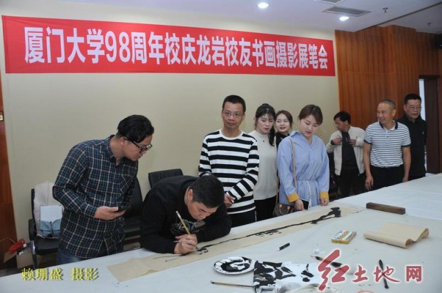 本次活动在福建省龙岩市文联支持下,由厦门大学龙岩校友会主办,厦门大学龙岩校友会艺术分会、汇艺堂策划机构承办。书画摄影展以厦门大学校训“自强不息·止于至善”为主题,展出了200多幅书画摄影作品。 厦门大学艺术学院副院长吴荣华先生、厦门大学漳州校友会会长吴两同先生、厦大龙岩校友会会长廖格民先生、龙岩市文联主席王永昌先生出席并致辞发言,表达了他们的良好祝愿。