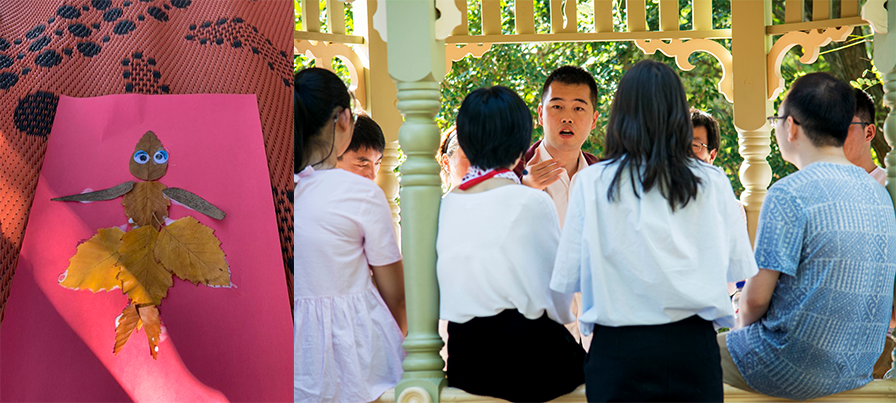 而在段秉昂校友妻子的带领下,年幼的小朋友们拾起园中枯黄的秋叶,并以此为基础作画。小朋友们都积极发挥自己的想象力,画出了属于自己的独特作品。