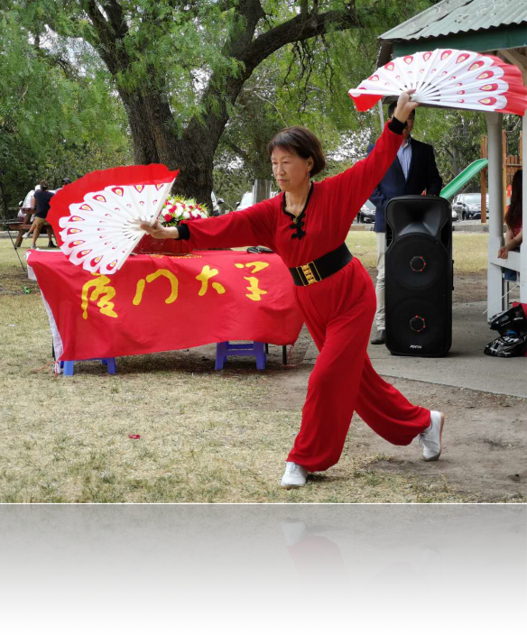 Leo校友的父亲不远万里来到墨尔本,为校友会献上了精彩的太极刀表演,引起了阵阵欢呼。