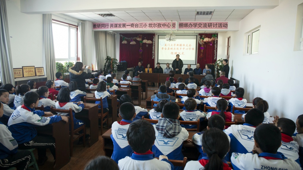 学生、青年、农民,他们等待的是同一件事情。就在这天,由厦门大学新疆校友会捐赠的9台65寸乐视电视机,被分别运送到以上三个地方。
