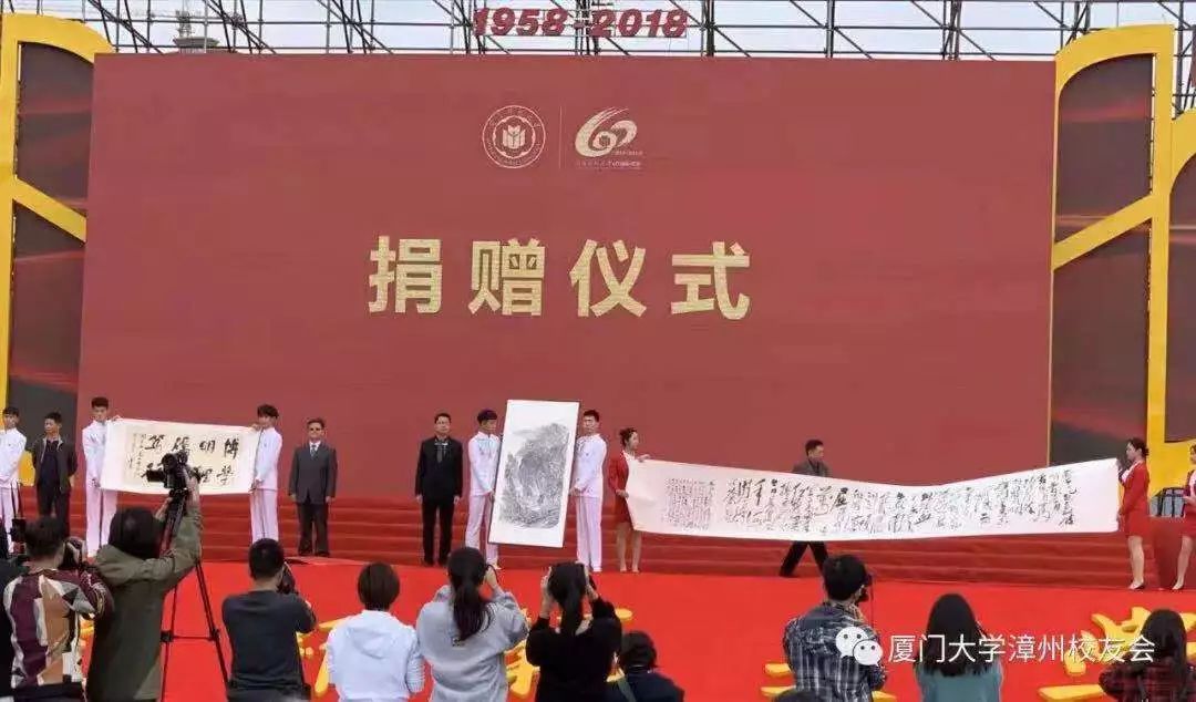 2018年7月,厦门大学漳州校友会与闽南师范大学校友会共建为“友好校友会”。这次厦门大学漳州校友会共精选出十余件优秀书画作品捐赠给闽南师范大学,以供收藏、保存、陈列、展览。这些作品是厦大人用笔墨丹青表达对兄弟院校60年风雨历程的感念与美好寄托,也是落实母校会议精神、推进校地合作、校企合作、校会合作的有力举措。