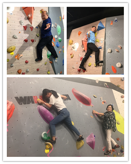 老学长们在年轻校友活力的辐射下,也来试试攀岩的乐趣